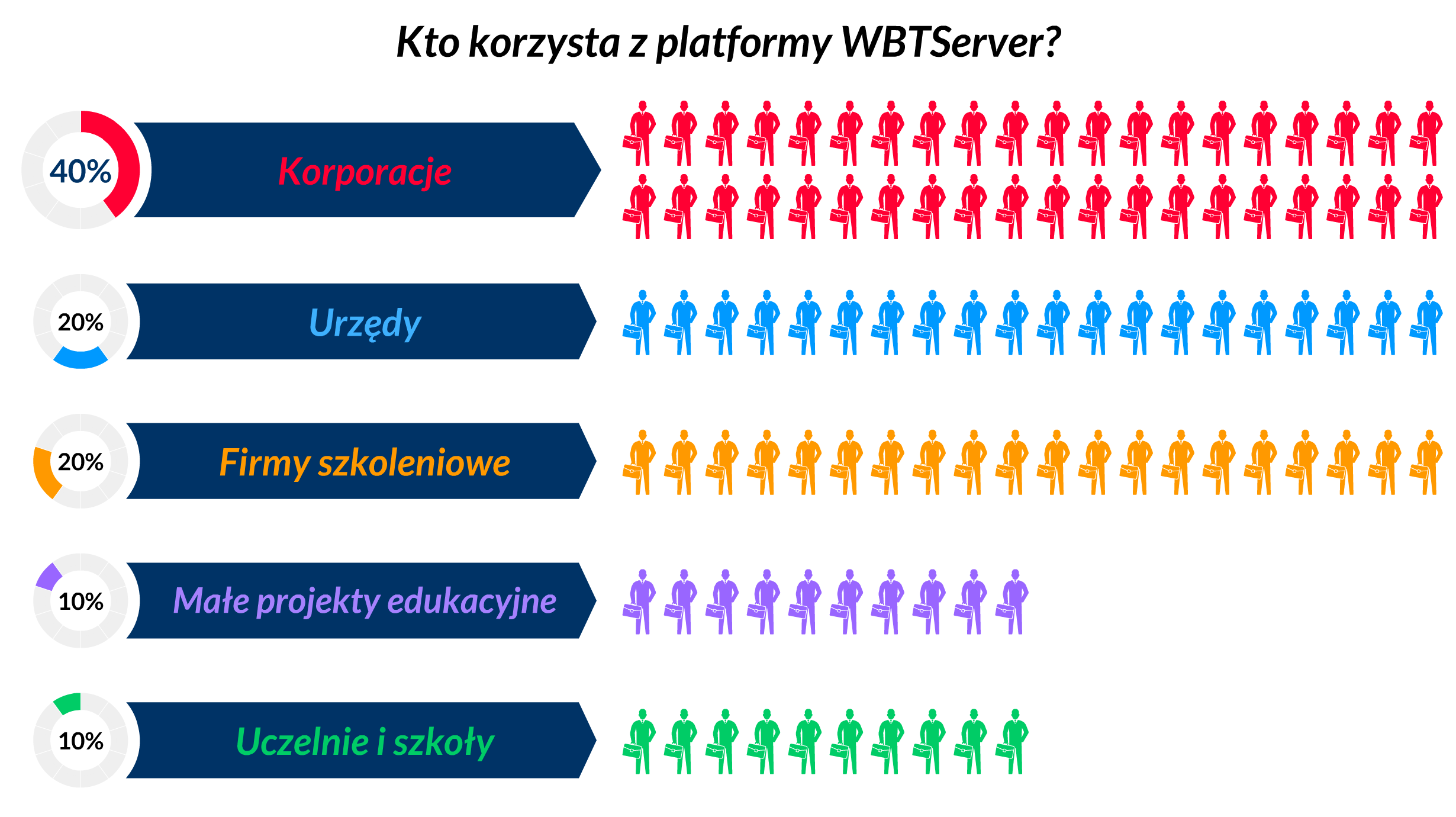 Duże firmy i korporacje często stawiają na rozległe raporty i automatyzację procesów szkoleniowych. Firmy szkoleniowe interesuje sprzedaż szkoleń i obsługa płatności. Wszystkich interesuje prostota obsługi :)